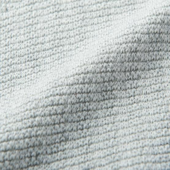ウエスト上部は優しくフィットしてずり落ちにくい編地に、お腹の中心部は保温性を高め、脇部分は通気性にすぐれたメッシュ編みにしてあります。この計算された編み構造が温まるのにムレにくいポイント。