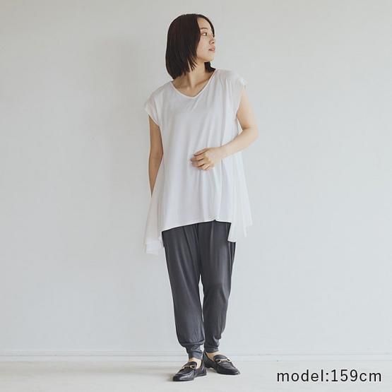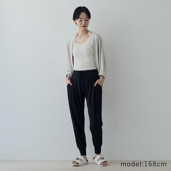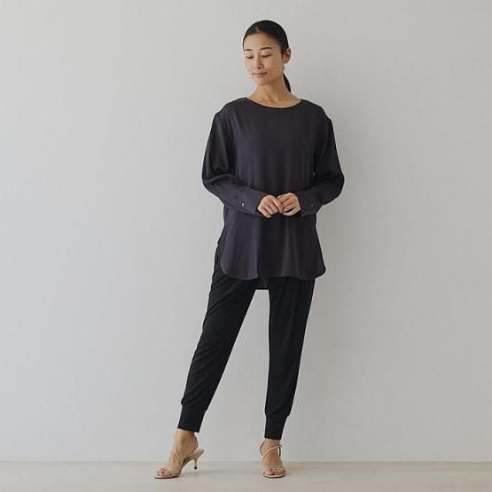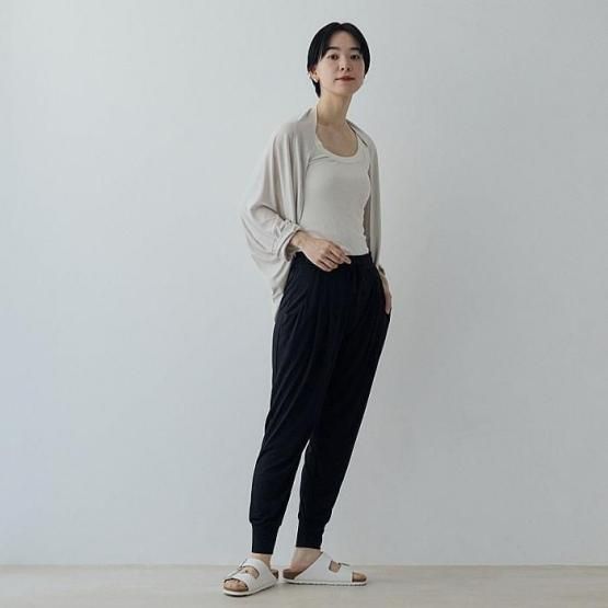リラックスウェアとしてカットソー/シルクモダール ドルマンスリーブと合わせて着るのもオススメです。ワントーンでまとめられますし、そのままワンマイルウェアとしても活躍します。
