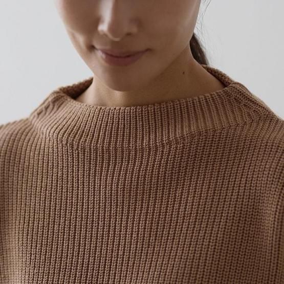 ざっくりとした凹凸感が美しく映える、総天然繊維で編んだボトルネックニット。あえて装飾を抑えたシンプルなデザインだからこそ、編地の存在感が引き立ち、どんなスタイルにもすっと馴染みます。