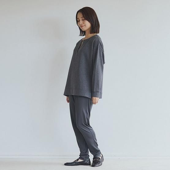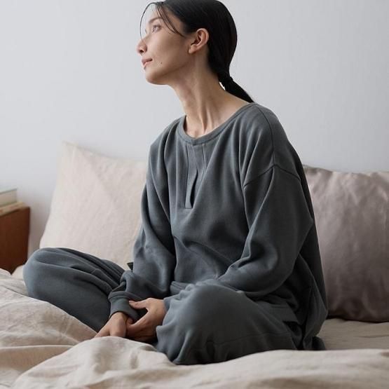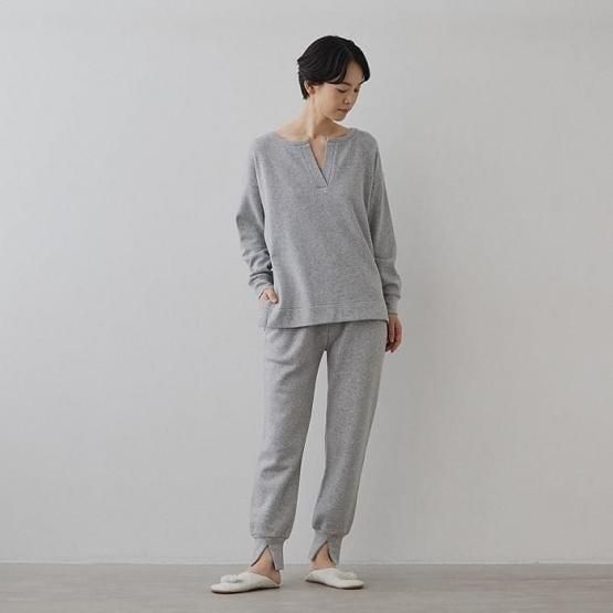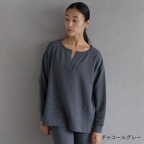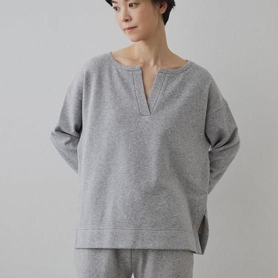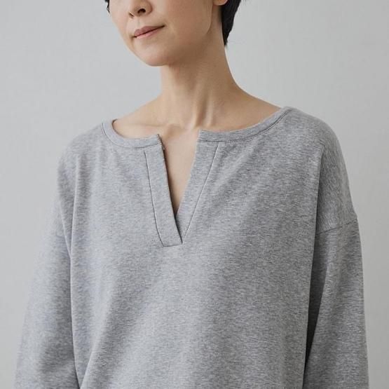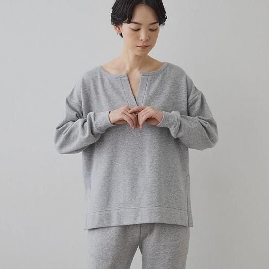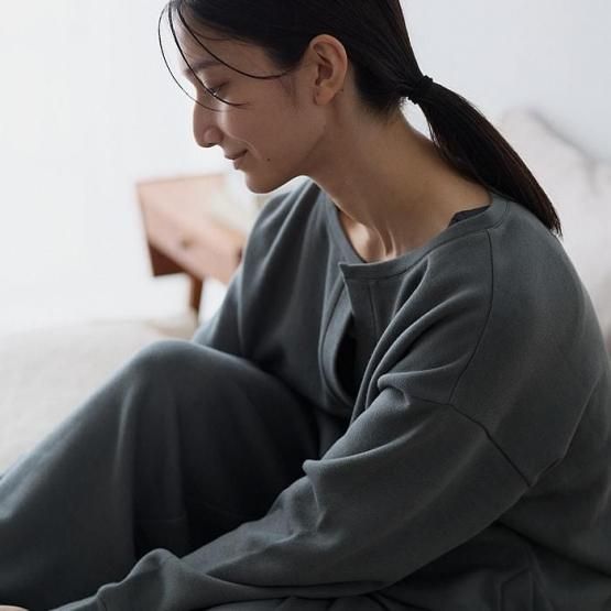 ただ一点だけ…このキーネックは開きが大きすぎてめちゃめちゃ首寒い。私は骨格ストレートなため尚更なのでしょうが、そのまま授乳できちゃう開き具合です。インナーなしでは決してお外には出られません。でもそれではこの着心地の良さは遠ざかります。オシャレは我慢なのか…悩みながらもお部屋着として大活躍中です。