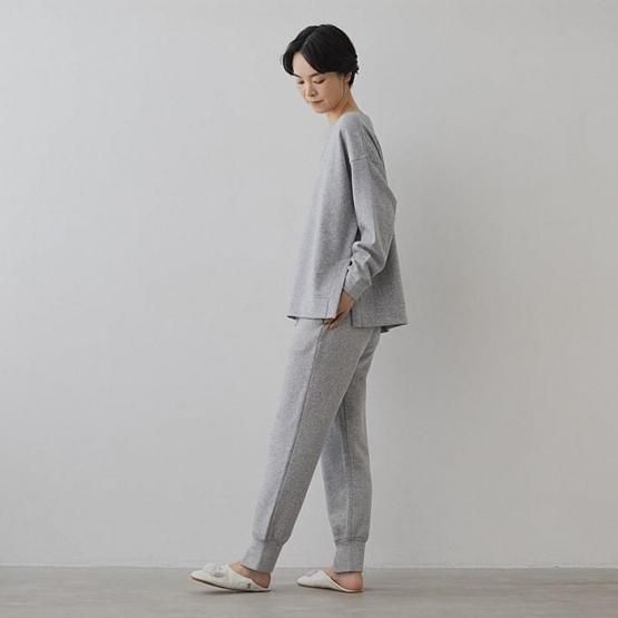 上下でモスカーキを購入しました。当方150cm60kg後半の残念体型ですが着れました。スウェットのようなしっかりした厚みと動きやすさはありつつ、生地はもちもちフワフワのスベスベで着心地最高です。