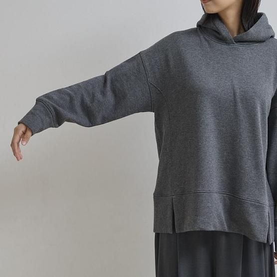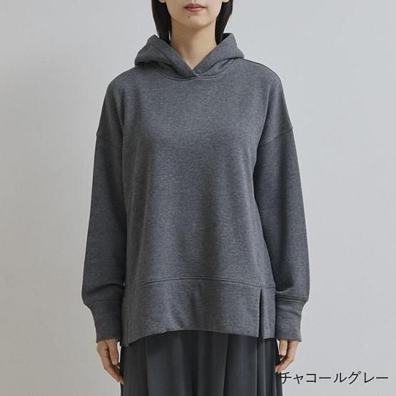 リラックス感満載のパーカーなので、リモートワークから休日のホームウェアまで幅広く活躍します。お仕事ウェア、休日の散歩、カフェでのランチ。どんな場面でも窮屈感がなく、着心地はラクなのにおしゃれに見えます。同じ素材の、「パンツ/ウォームシルク 裾スリット」や、「パンツ/ウォームシルク ワイド」と合わせれば、セットアップとしても便利です。「ヘアターバン」と合わせて、ストレスフリーなコーデを楽しんでください。