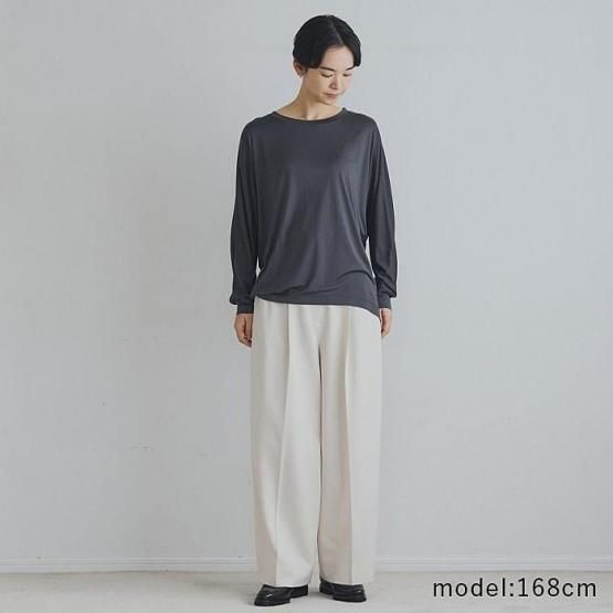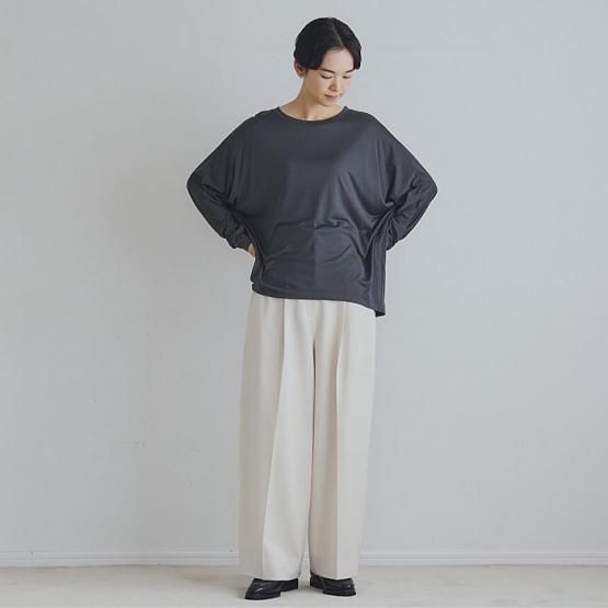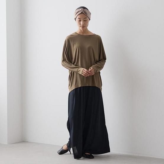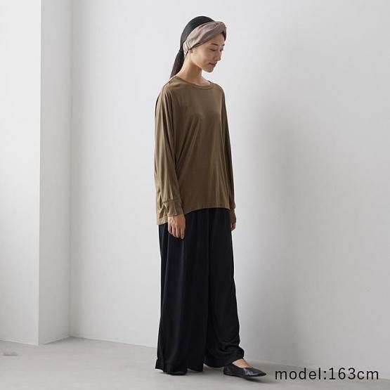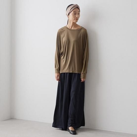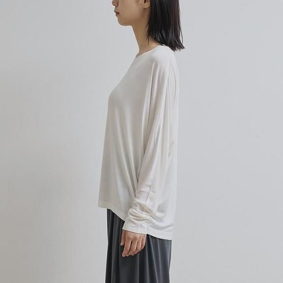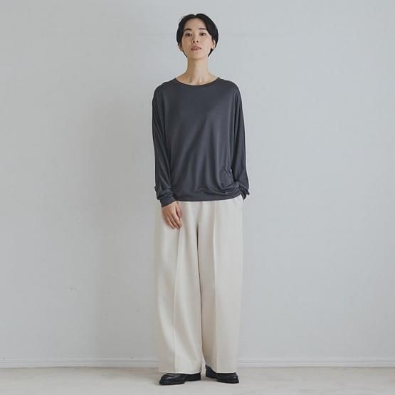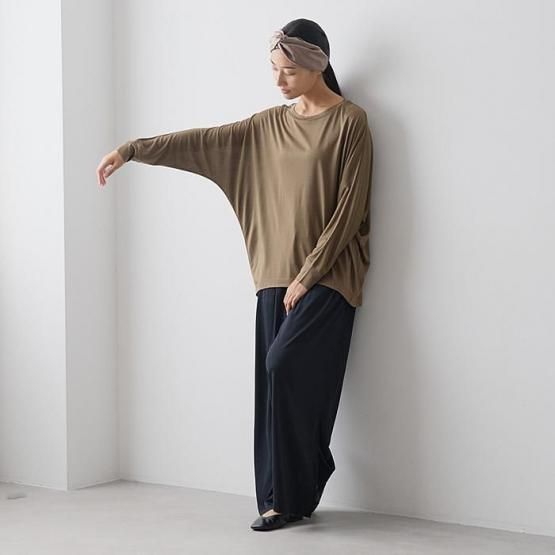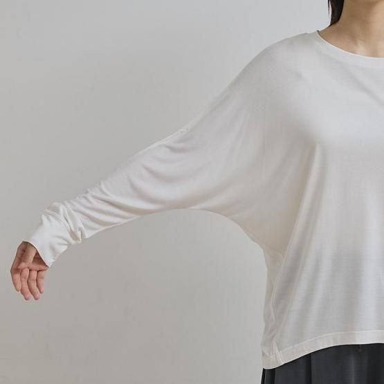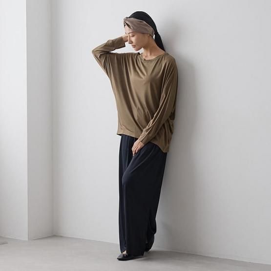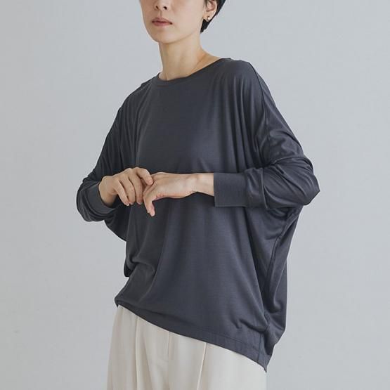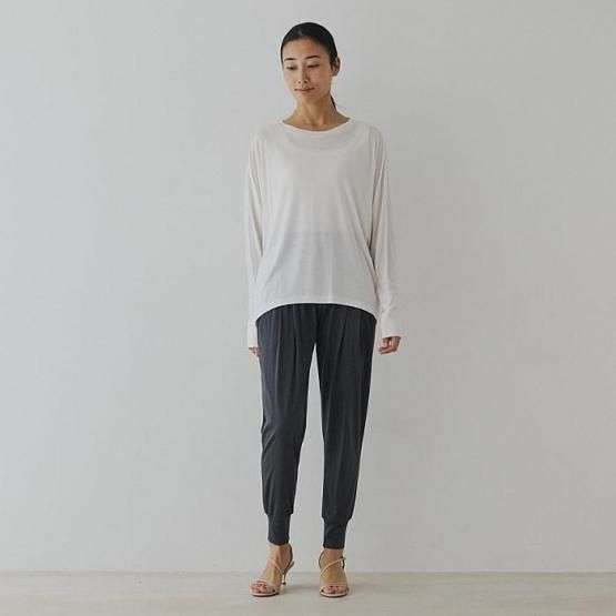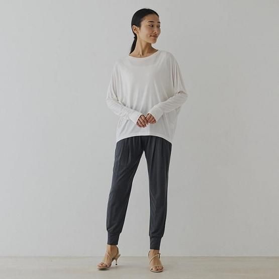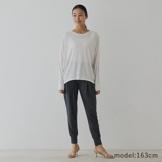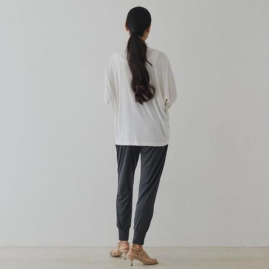 最初にこの素材の黒のジョガーパンツを購入し、その素材の軽さと柔らかさ、肌触りが大変気に入ったので、今回プルオーバーとジョガーパンツをチャコールで購入しました。私はチクチクすることに大変敏感なので、このプルオーバーに期待していましたが、届いて試着した時に肩にチクチク感がありました。なぜかなと思い、縫い目を見ると、肩の部分だけ透明なテープのような補強素材が一緒に縫われていました。あー、残念!でも、この素材自体の肌触りは好きなので、寝る時に着る場合は、裏返して着ると思います。人と会うような時に着る場合は、下着で工夫しようと思います。できれば、バージョンアップされる際には、縫い目は伏せ縫い処理などしていただけると、もっともっと日常的に使えるプルオーバーになると思います。