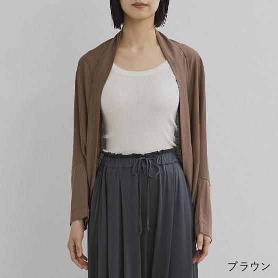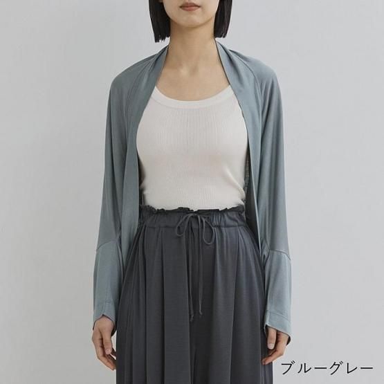 シルクとリネンの涼感素材で、サッと羽織るのにピッタリのボレロカーディガン。