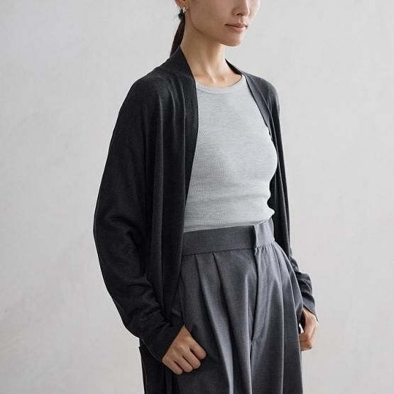 空気のように薄く、光をほんのり透かす繊細な生地は、季節の狭間にちょうどいい心地よさ。発売以来、「毎日着てしまう」と大人女性たちからたくさんの支持をいただいてきました。寒暖差の大きい春や、クーラーの冷えに悩む夏に、信頼の一枚としておすすめしたいカーディガンです。