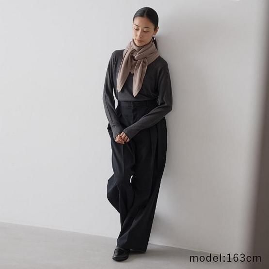 カラーは、チャコールグレー、パープルグレー、モカ。 定番の「アームウォーマー/シルクカシミヤ」とカラーを合わせていますので、セット使いもOK。秋冬のスタイリングは、同じアウターを着ることが多いと思いますので、小物で変化をつけるのがオシャレ上級者。首元と手首のカラーを統一すると、スタイリングにこなれ感が増します。折りたたむとコンパクトになるので、持ち運びしやすいのも嬉しいところ。