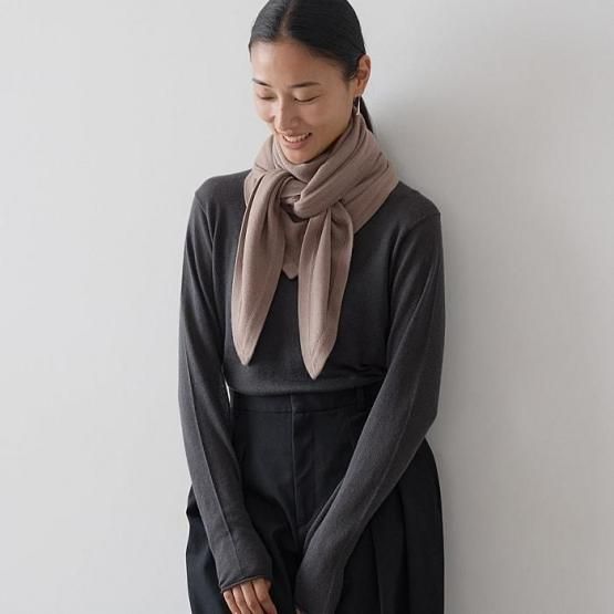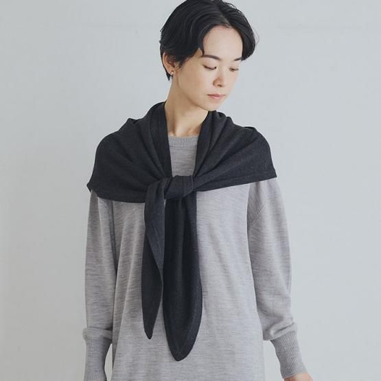 大判ストールも冬に大活躍しますが、気兼ねなくいつものスタイリングにサラッとプラスすることのできる三角型のストール。最初はどんなふうに巻けばよいの?と考えてしまうかもしれませんが、実際に使ってみると、長方形や正方形のストールより使い勝手がよいと感じてもらえると思います。