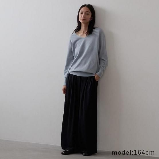 サラリとした生地感はそのままですので、真夏以外のスリーシーズン活躍してくれる一枚。着れば夢中になる抜群の肌心地です。パンツでもスカートでもボトムを選ばないデザインだから着こなしの幅が広いのも嬉しい。