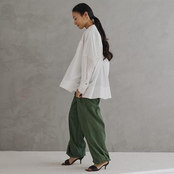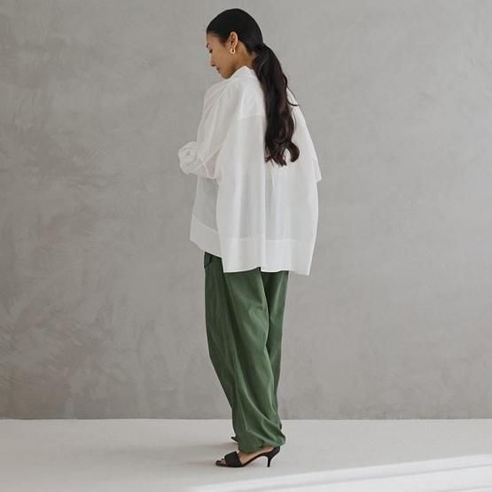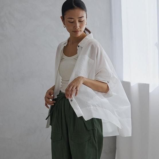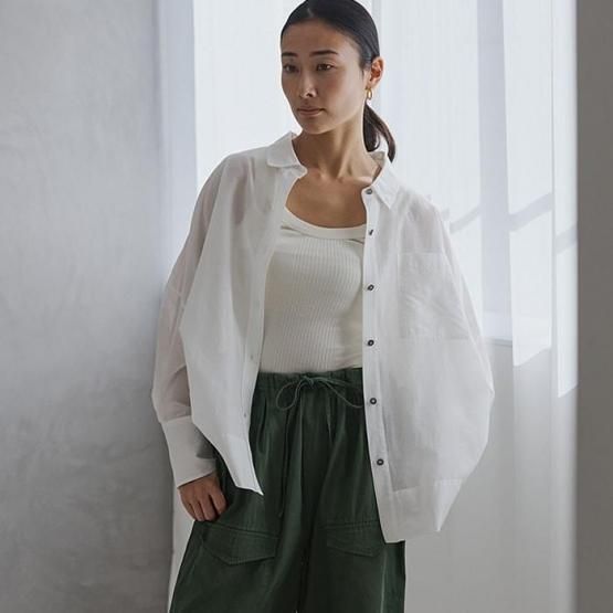 見た目の美しさだけでなく、着心地にまで心を配ったこのシャツは、働く女性の日常にそっと寄り添い、装うたびに心が浮き立つ存在になります。