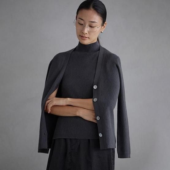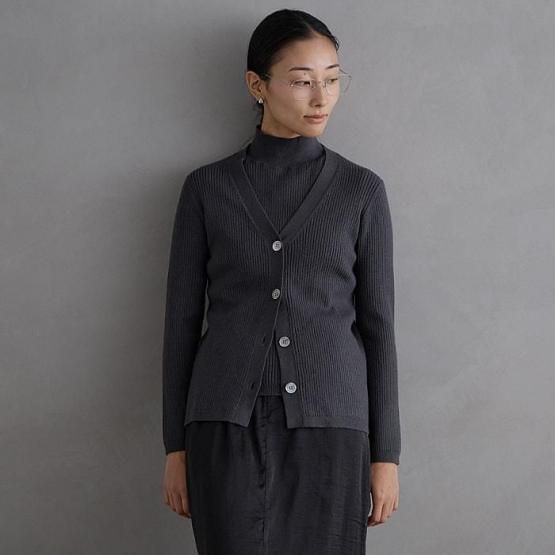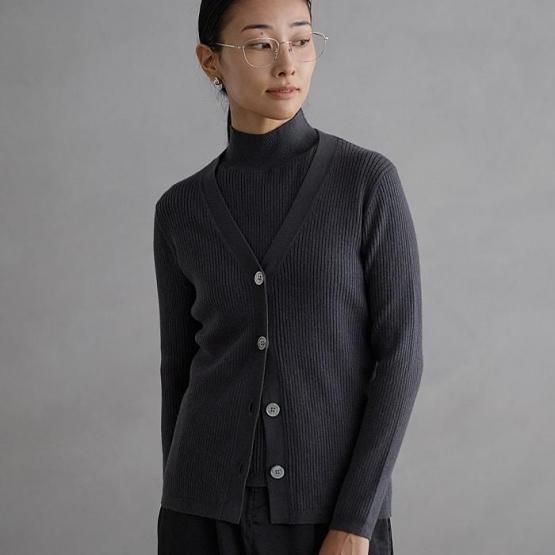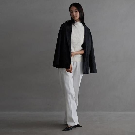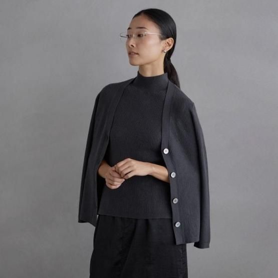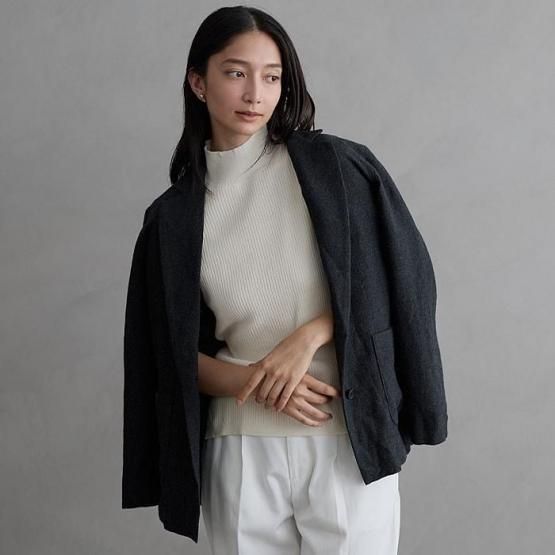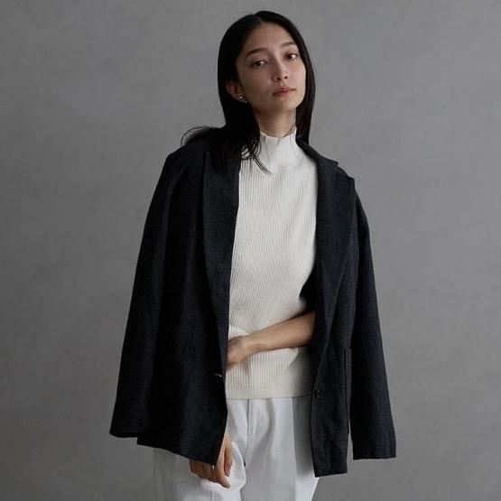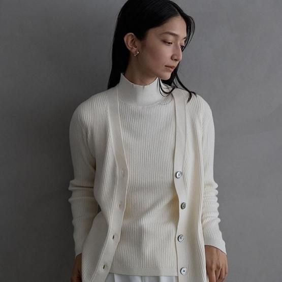しっとりと肌に寄り添うシルクのなめらかさと、カシミヤのふんわりとした温もりを一度に味わえるよう素材選びにはこだわり、ナイロンを少量加えることで伸縮性と型崩れ防止もプラス。しっかりとしたリブ編みがシルエットを保ち、日常使いしやすい頼れる仕上がりになりました。