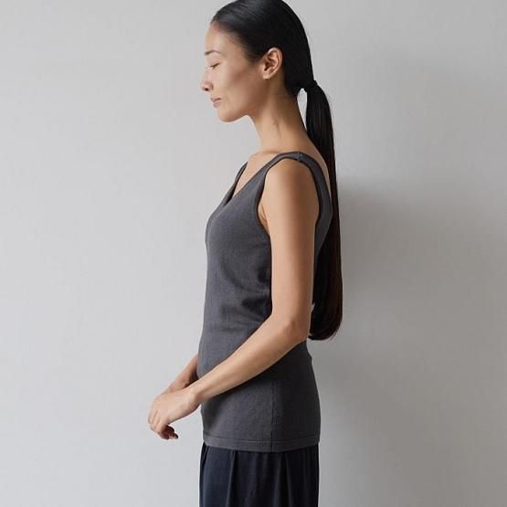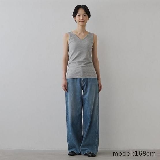 前後どちらでも着られる2WAYデザインで、UネックとVネックを使い分けることが可能です。背中の開いたトップスを着るときは、Uネックを後ろにして着用すればインナーが見えにくく、装いの幅が広がります。襟ぐり、アームホールは、上に着用するトップスにひびかないよう、繊細な作りに仕上げています。